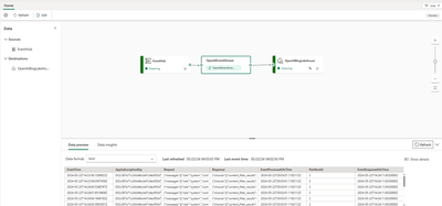 - The output of the stream is written to a managed Delta table in a Lakehouse.