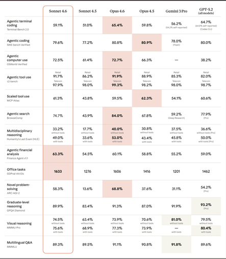 Ref: Benchmark table published by Anthropic