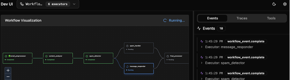 DevUI provides a developer-friendly interface for debugging and visualizing multi-agent workflows, making it easier to trace conversations, tool calls, and state transitions. This improves observability and accelerates development, reducing friction when building and testing complex agentic systems.