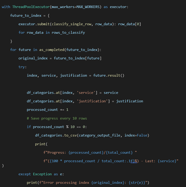 We use ThreadPoolExecutor, which is well-suited for I/O-bound workloads like API calls to LLMs: