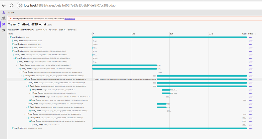 Use logging to trace messages and troubleshoot issues during development. Autogen provides built-in support for exporting logs to the Aspire dashboard via OpenTelemetry. Refer to the documentation for setup details link . Sample tracing