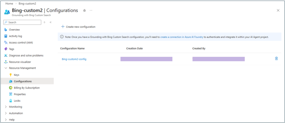 - Creating “Grounding with Bing Search” and “Grounding with Bing Custom Search” resources
