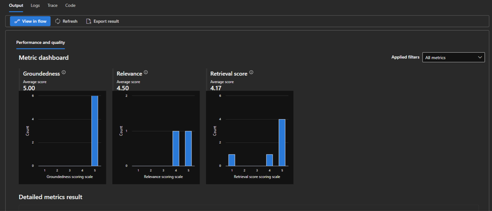 12. Also, under the Output tab, you can also see a detailed view of the metrics under Detailed metrics result.