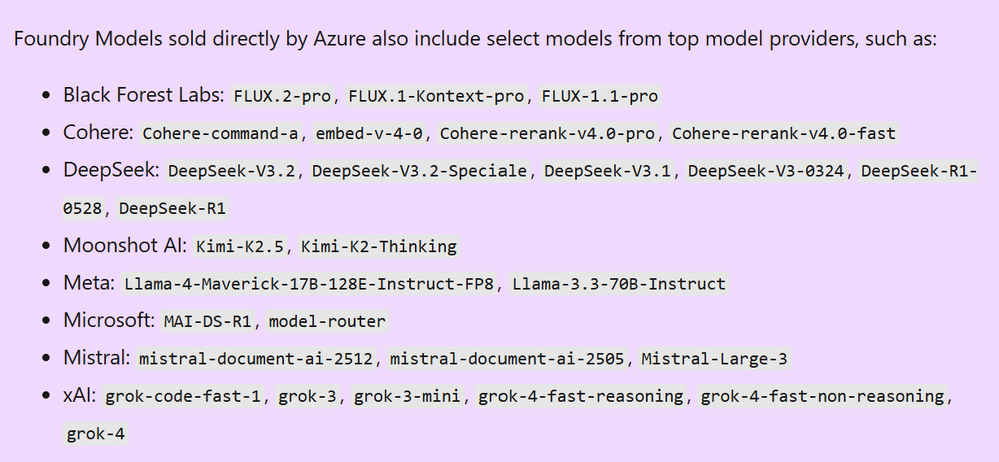 - Access to leading foundation models, including Azure OpenAI models and selected open-source models