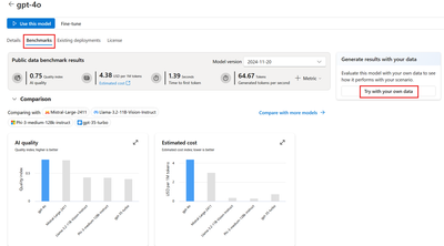 - Evaluate and deploy - Use built-in evaluation and safety tools, then deploy AI solutions into production with confidence.