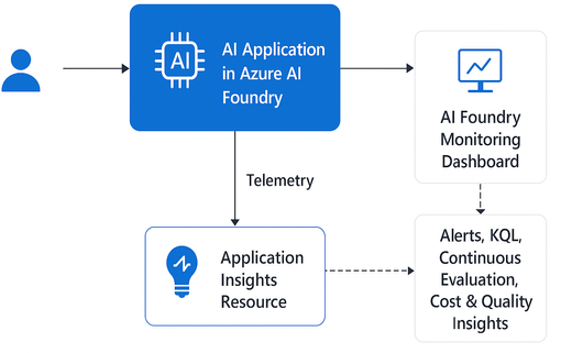Azure AI Foundry provides integrated observability tools that connect Application Insights, continuous evaluation, and custom dashboards — giving you end-to-end visibility into your AI application. This blog is also aligned with Azure baseline monitoring alerts.
