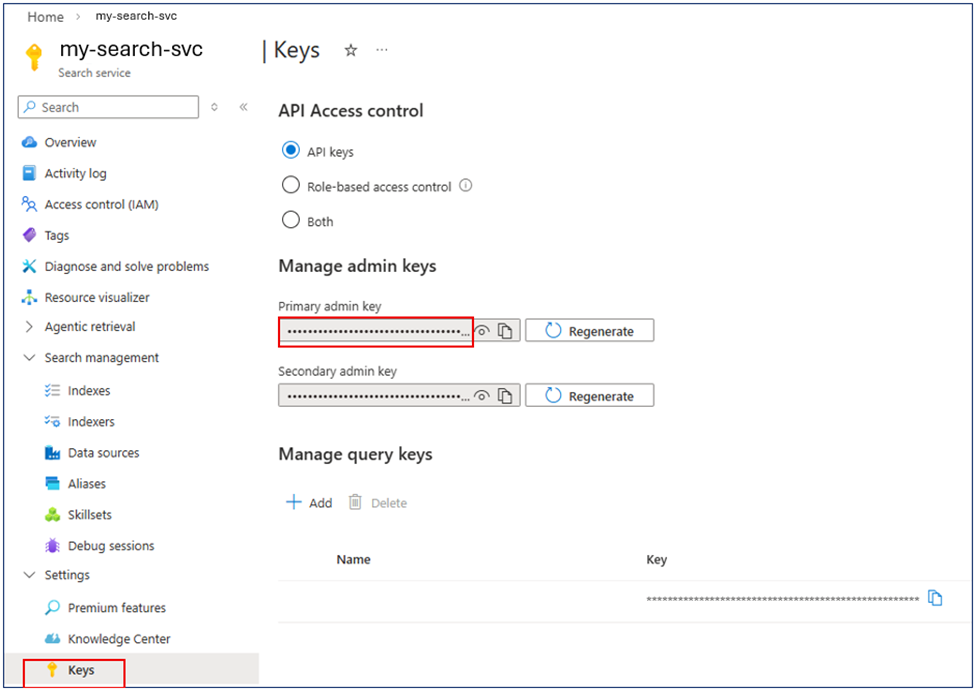 Step 3. Get the API key from AI Search service.