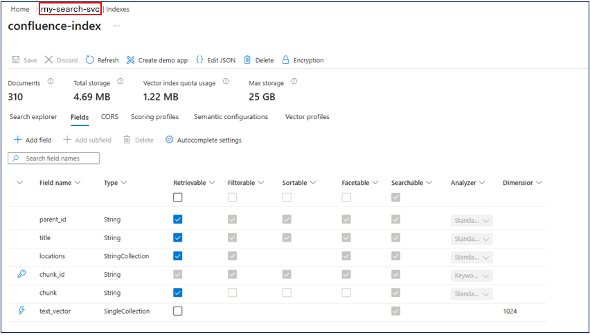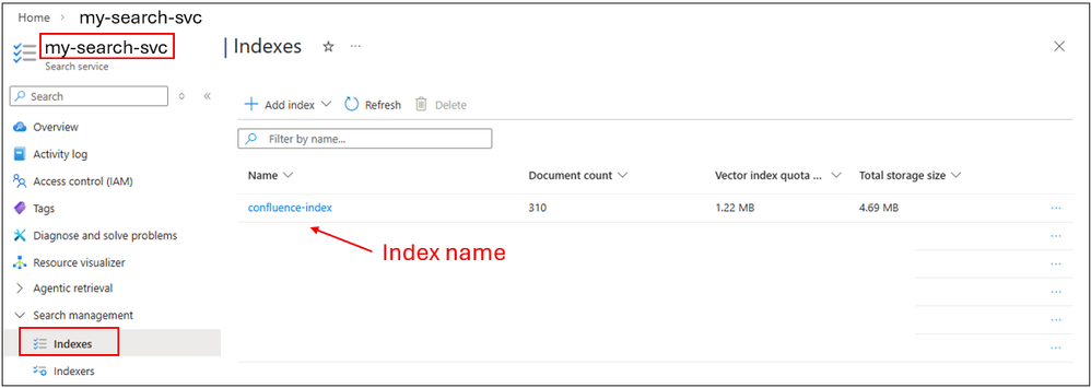 Step 2. Get the index name from AI Search service.