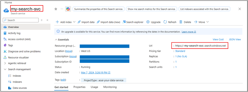 Step 1. Get search service URL from Azure portal.