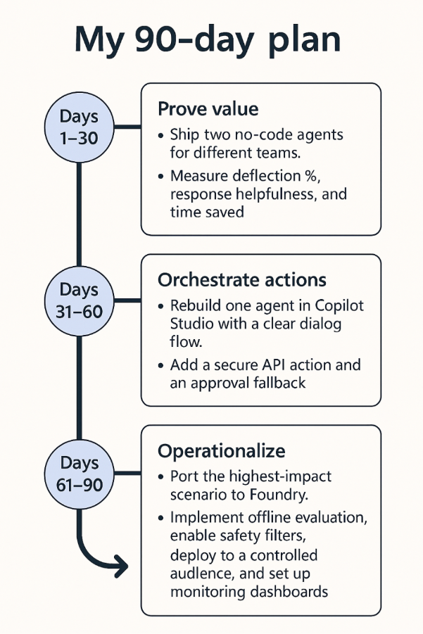 - Rebuild one agent in Copilot Studio with a clear dialog flow.
