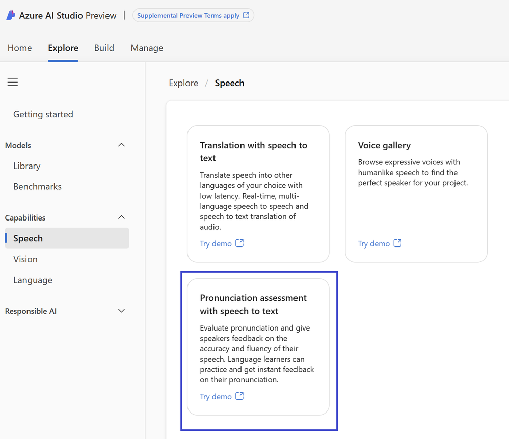 To learn more and get started, first try our no-code tool provided in AI Studio on Reading and Speaking evaluation, which allows you to explore the Speech service with intuitive user interface. You will need an Azure account and a Speech service resource to create your own personal account in Speech Studio. If you do not have an account and subscription, try the Speech service for free.
