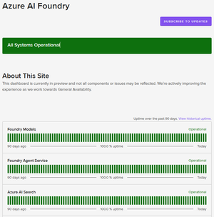 Introducing the status dashboard in Azure AI Foundry, a centralized view into the status, uptime, and availability of key Azure AI Foundry services as you design, customize, and manage AI application...