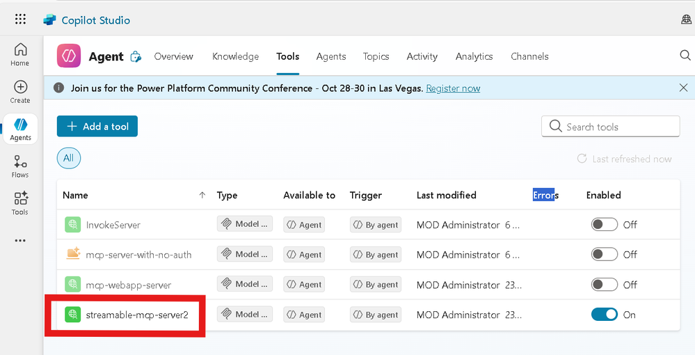 • MCP tool integration in Copilot Studio is currently a preview feature, so expect changes and improvements over time.
