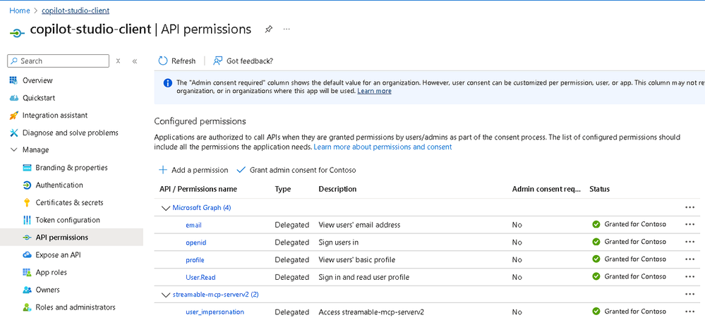 This article focuses on configuring an MCP tool within a Copilot Studio agent using OAuth 2.0 Authorization Code Flow. Every environment is unique, so the approach outlined here should be treated as a starting point rather than a one-size-fits-all solution. You can enhance this setup with additional security measures such as app rolesconditional access policies, or by extending the Python code for advanced scenarios.