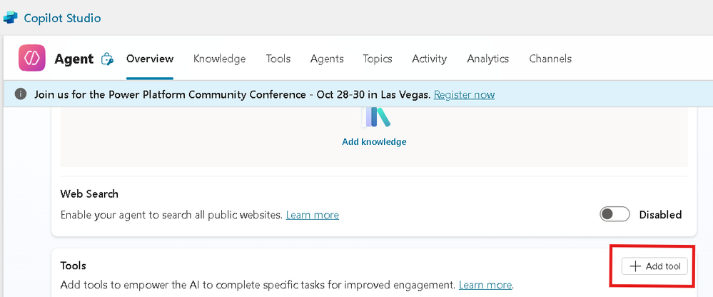 Make sure it is “Enabled” if you have other tools attached to the same agent, disable them for now for testing.