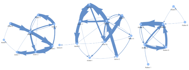 Figure 2: Learned troubleshooting workflows at different granularity. Each node corresponds to one action, and the links represent the sequence of steps taken during the investigation process.