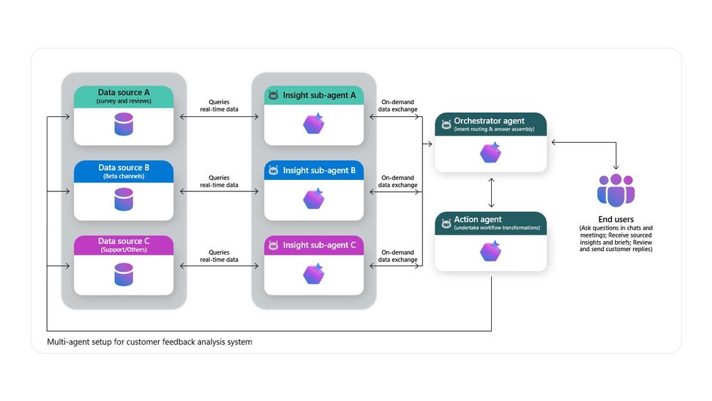 For our multi-agent system, every interaction was designed to provide high quality outputs which can be used with confidence. Outbound communications and work item creation always includes a human review step to support quality and accountability. Every insight is fully traceable back to its source, so teams can validate with ease. And because privacy matters, all data is handled through governed pipelines with strict retention and compliance controls—keeping your organization secure while delivering actionable intelligence.