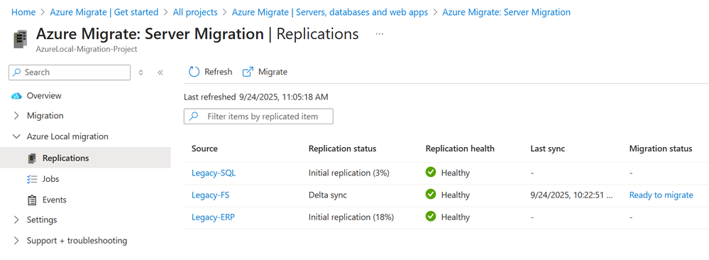 - Orchestrate migrations from Azure portal: Gain full visibility into replication progress, cutover readiness, and migration history.Monitor replication and migration progress with Azure Migrate from cloud control plane