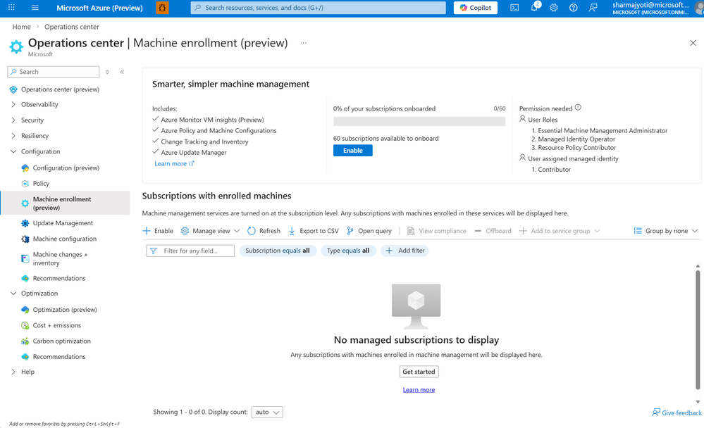 This is a first step towards improving configuration and management of machines, we are excited for you to try out the preview for operations center and plan to continue to making improvements to this space to help you manage resources better!