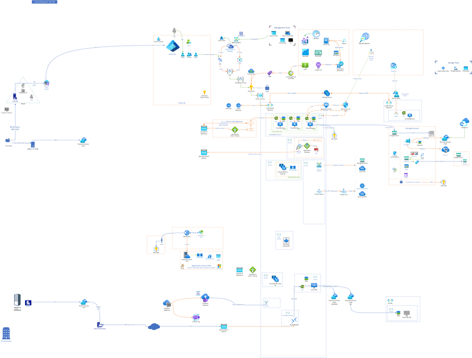 The Azure Course Blueprint is a comprehensive, visual guide to the Azure ecosystem. It brings together all services, tools, structures, and architectural relationships covered in each course into a single unified diagram.