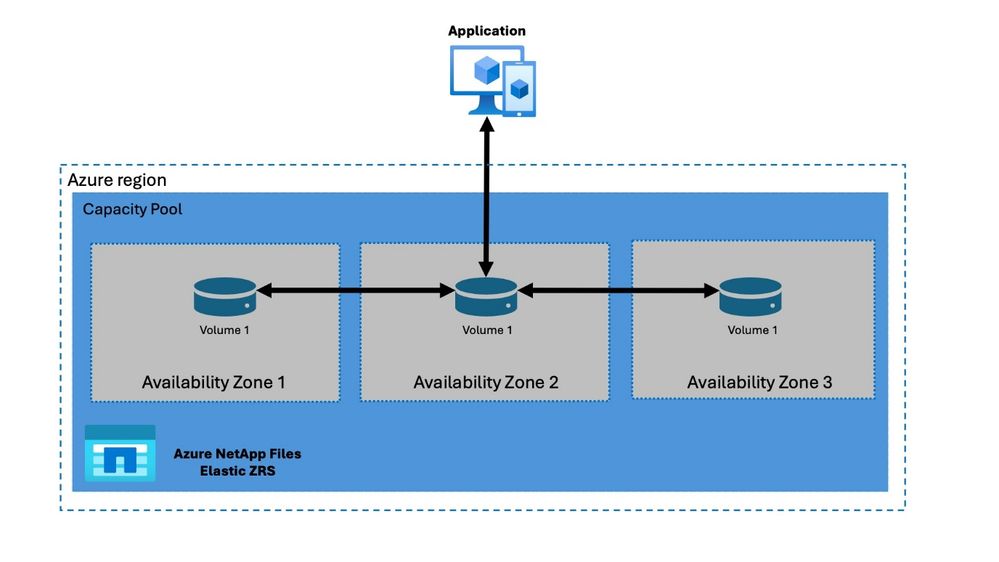 Azure NetApp Files Elastic ZRS, built on Azure’s Zone-redundant storage (ZRS) architecture and compute infrastructure, uses synchronous replication across multiple availability zones and automated failover at the storage platform level. This approach ensures your data remains consistent and available, while the underlying architecture maintains consistent performance (especially for metadata-heavy workloads) and operational simplicity.