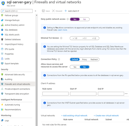 My customer wanted to lock down their Azure SQL access very, very tightly. The server should have no public endpoints whatsoever, and the only access to it should be from a specific set of trusted IP...