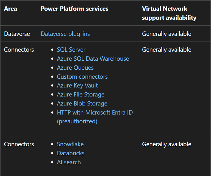 Source: Virtual Network support overview – Power Platform | Microsoft Learn