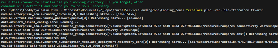 Execute terraform apply -var-file="terraform.tfvars" to deploy the connectivity infrastructure for the Landing Zone.