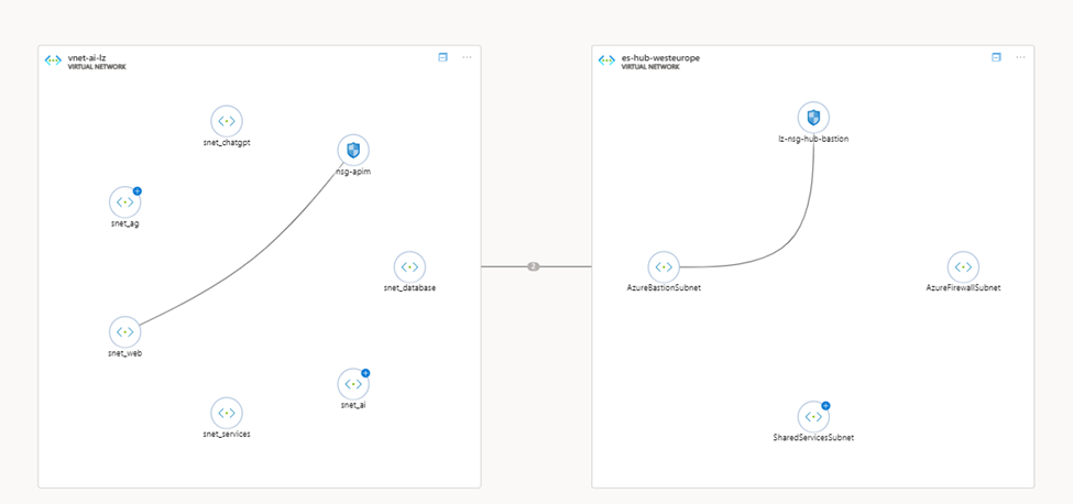 • Create Spoke Networks, separate virtual networks for securely hosting AI workloads.