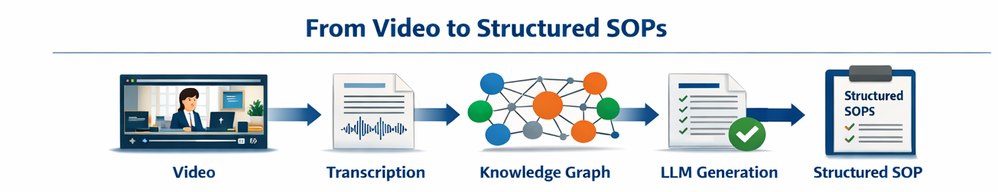 Video → Transcription → Knowledge Graph → LLM Generation → Structured SOP