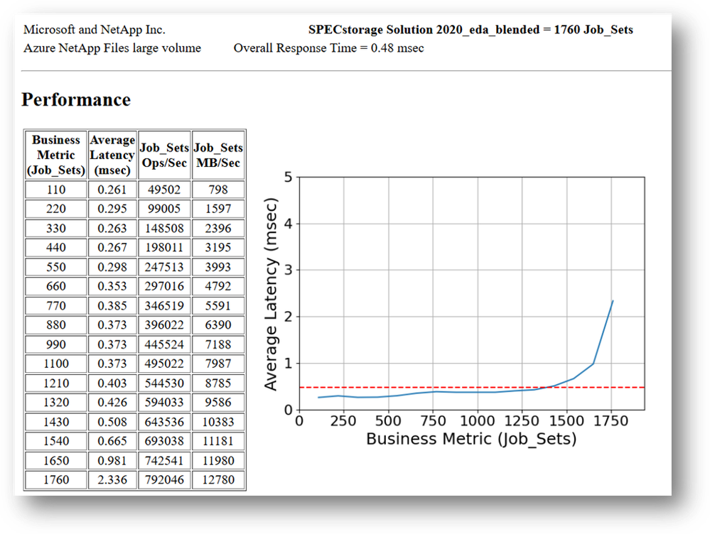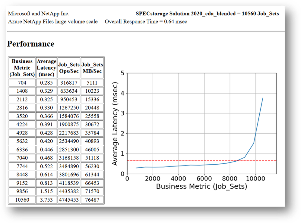 This section outlines the high-level outcomes for these SPECstorage® Solution 2020 EDA_BLENDED benchmarks, providing real-world validation of Azure NetApp Files’ performance and scalability: