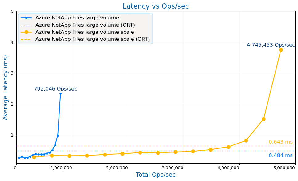 Of course, all the features and advantages detailed above would be merely theoretical without concrete evidence of performance to back them up. Recognizing the importance of substantiating these claims, Microsoft chose to submit two Azure NetApp Files benchmark tests: one focused on a single large volume’s capabilities, and another designed to demonstrate linear scalability across multiple volumes.