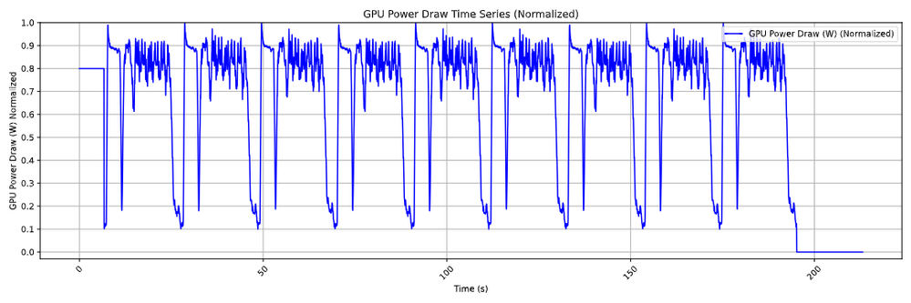 Modern AI training jobs span tens of thousands of GPUs, operating in tightly synchronized iterations. Each iteration includes a compute-heavy phase, where GPUs process local data, followed by a communication-heavy phase, where they synchronize globally. This pattern creates dramatic swings in power consumption—surges during computation and dips during communication.