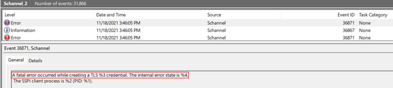On Windows Server version 1709 Windows Server version 1803 Windows Server version 1809 Windows Server version 1903 Windows Server version 1909 Windows Server 2019, when TLS 1.2 is enabled and TLS 1.1 and lower is disabled, Key Exchange Algorithms PKCS is required.