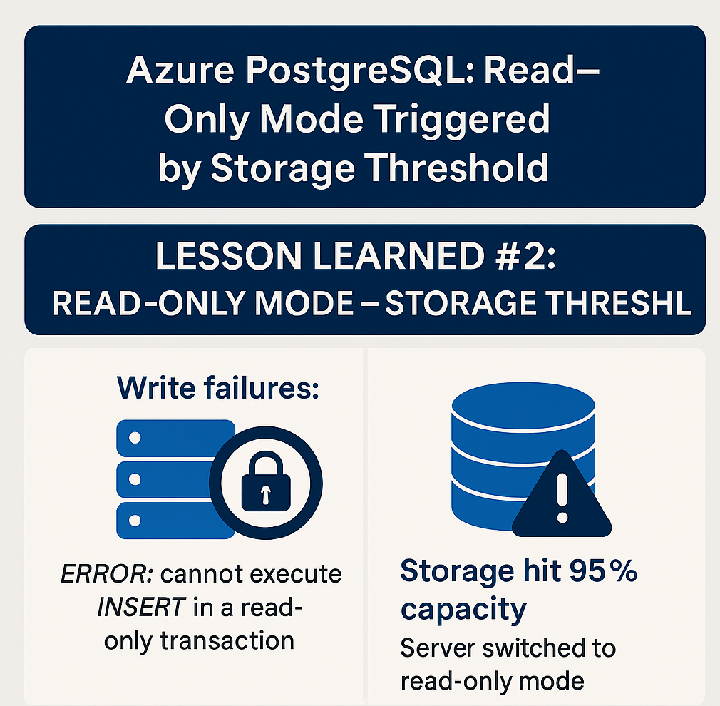 We encountered a support case involving Azure Database for PostgreSQL Flexible Server where the database unexpectedly switched to read-only mode, causing application write failures. This blog explains the root cause, resolution steps, and best practices to prevent similar issues.