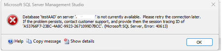 When I am not able to connect to the Azure SQL db, and I get this error message,