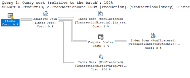 And the inner join query without where clause, now is using adaptive join instead of Hash:
