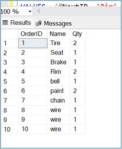 INSERT test.Orders (OrderID, Name, Qty) VALUES ( NEXT VALUE FOR Test.CountBy1, 'wire', 1);