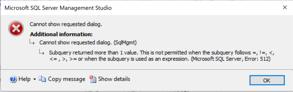 Today, I saw this error message when our customer is trying to obtain the properties of a database. This issue sometimes happened when SQL Server Management Studio is trying to obtain the last backup date done in Azure SQL Managed Instance.