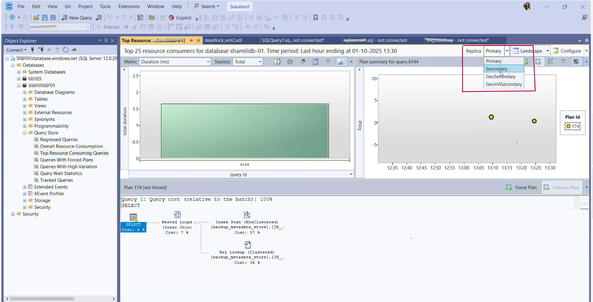 This enhancement provides clear visibility into how queries execute on the primary and the read‑only replica, helping identify performance patterns more accurately. With this update, Query Store records execution data from both primary and read‑only replicas for all new and existing databases, making troubleshooting simpler, faster, and more reliable.