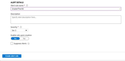 - In Alert Details section, fill alert rule name and description and finally click on Create alert rule button, please have a look at the following snapshot: