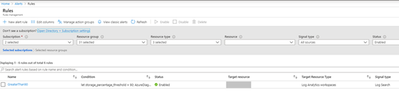 - To check if the alert created, from the portal search for Alerts then manage alerts, and you will find your created alert, please have a look at the following snapshot: