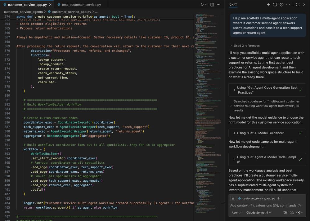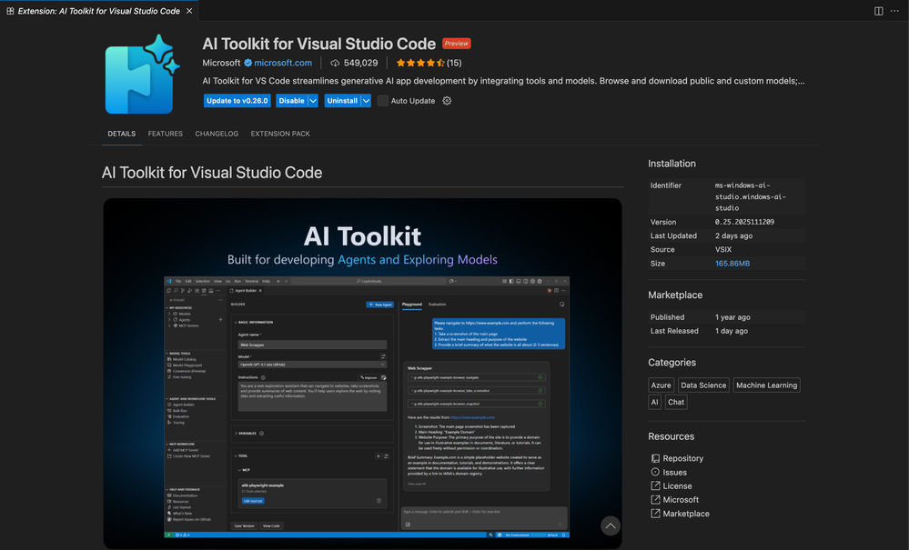 The Ignite 2025 update delivers a major leap forward for the AI Toolkit extension pack in VS Code, introducing a unified, end-to-end environment for building, visualizing, and deploying intelligent agentic applications. This release enables developers to build and debug locally in VS Code, then deploy to the cloud with a single click. Seamlessly switch between VS Code and the Foundry portal for visualization, orchestration, and evaluation, creating a smooth roundtrip workflow that accelerates innovation and delivers a truly unified AI development experience. Download the AI Toolkit extension today and start building next-generation agentic apps in VS Code!