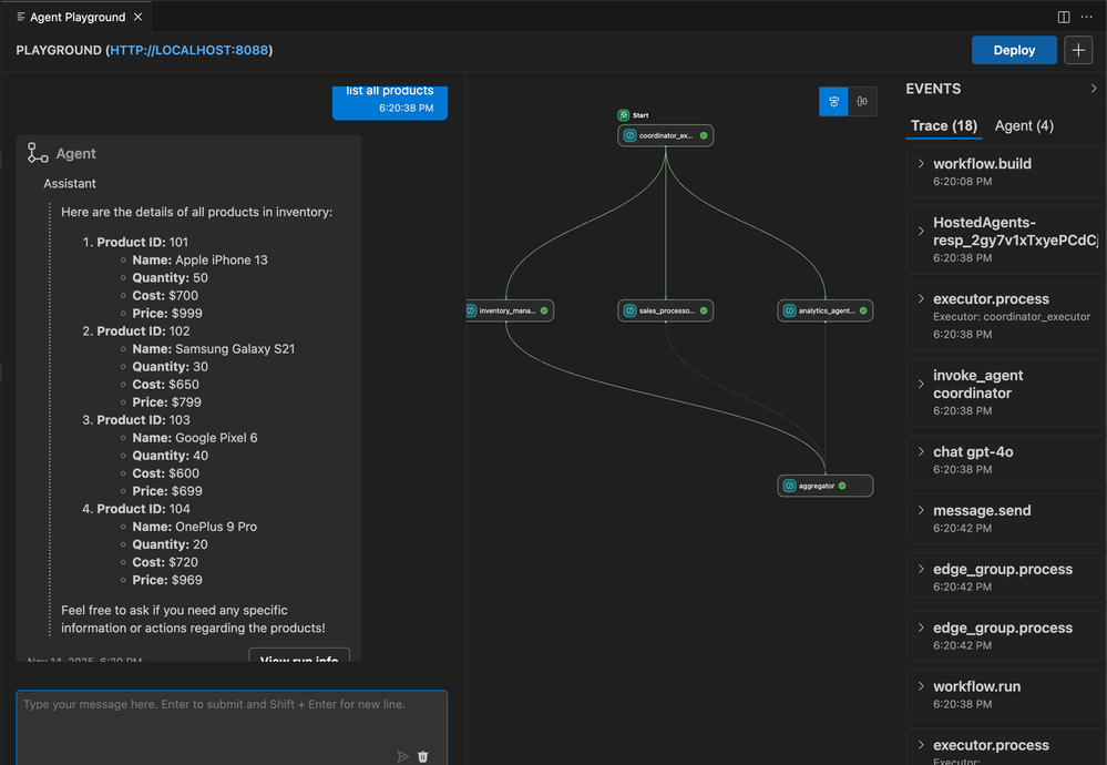 - Use the Hosted Agents Playground to quickly interact with your agents on your development machine.