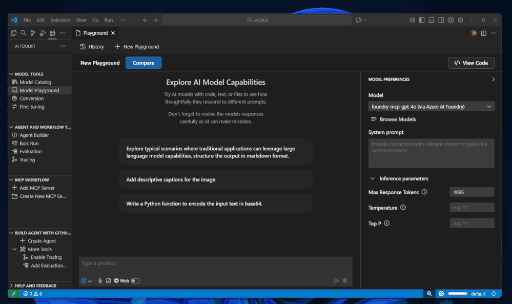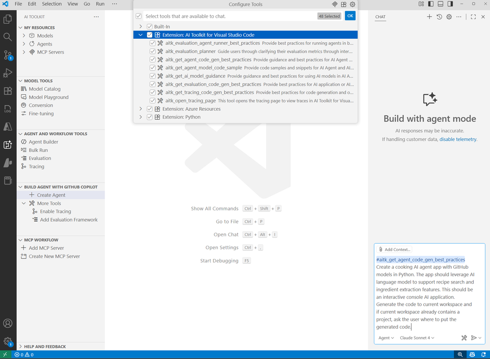 We're thrilled to bring you the October update for the AI Toolkit for Visual Studio Code! This month marks another major milestone with version 0.24.0, introducing groundbreaking GitHub Copilot Tools Integration and additional user experience enhancements that make AI-powered development more seamless than ever.