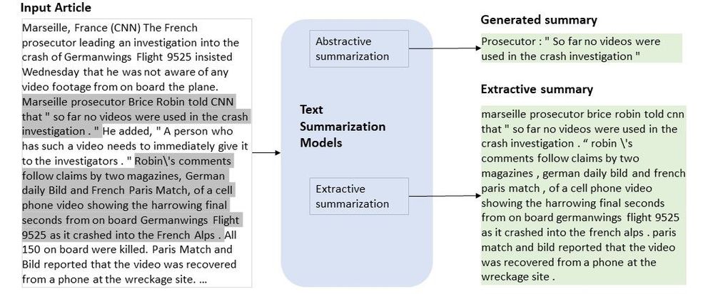 Text summarization is a common problem in Natural Language Processing (NLP). With the overwhelming amount of new text documents generated daily in different channels, such as news, social media, and tracking systems, automatic text summarization has become essential for digesting and understanding the content. Newsagents, for example, have been utilizing such models for generating headlines and titles for news articles, and thus saving a great deal of human effort. Overall, automated text summarization technology is powering business scenarios in a wide range of industry verticals such as media & entertainment, retail, technology, and financial services such as robo-advisors.