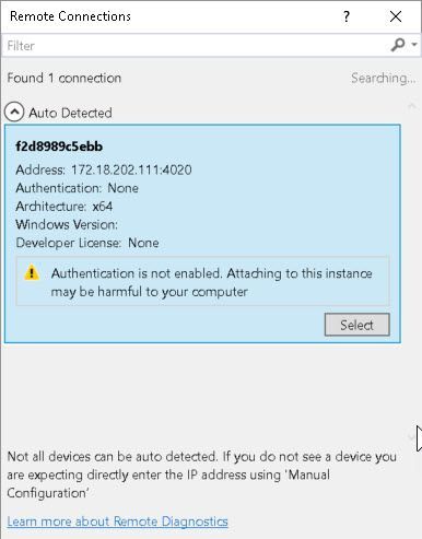 In all three examples, the container needs to be prepared to allow for Visual Studio to access a running process on the container. Most devs are familiar with debugging solutions at design time using both the auto-attach (F5) and attaching the debugger to a running process on their local machine. This approach can be used to attach to a remote computer and even to Azure Web Apps and Azure Functions .