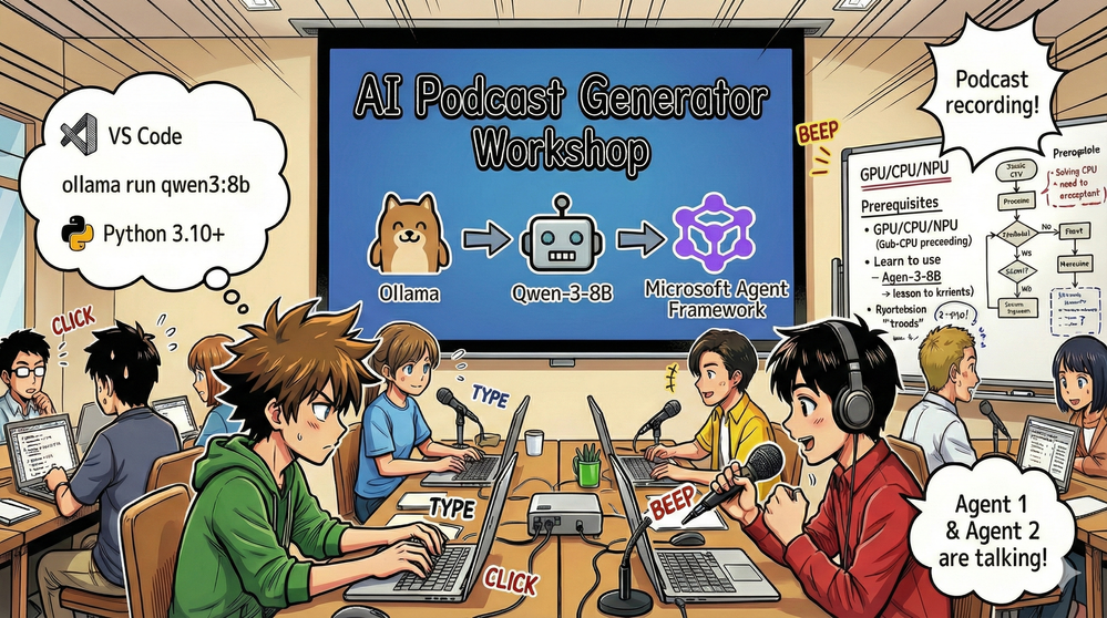 This technical guide explores the architecture and implementation of The AI Podcast Studio. This project demonstrates the seamless integration of the Microsoft Agent Framework, Local Small Language Models (SLMs), and VibeVoice to automate a complete tech podcast pipeline.