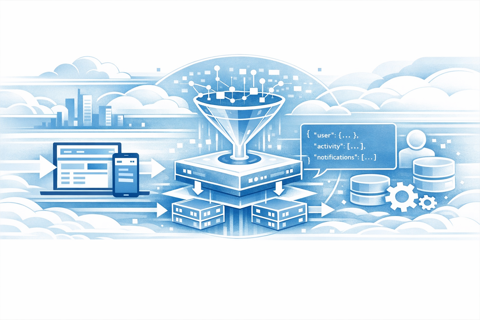 - Aggregates data from multiple backend services