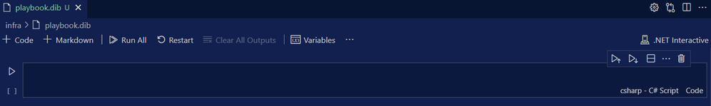 I chose to save it directly under /infra as playbook.dib. And now you have the option to execute code inline and explain with Markdown along the way: